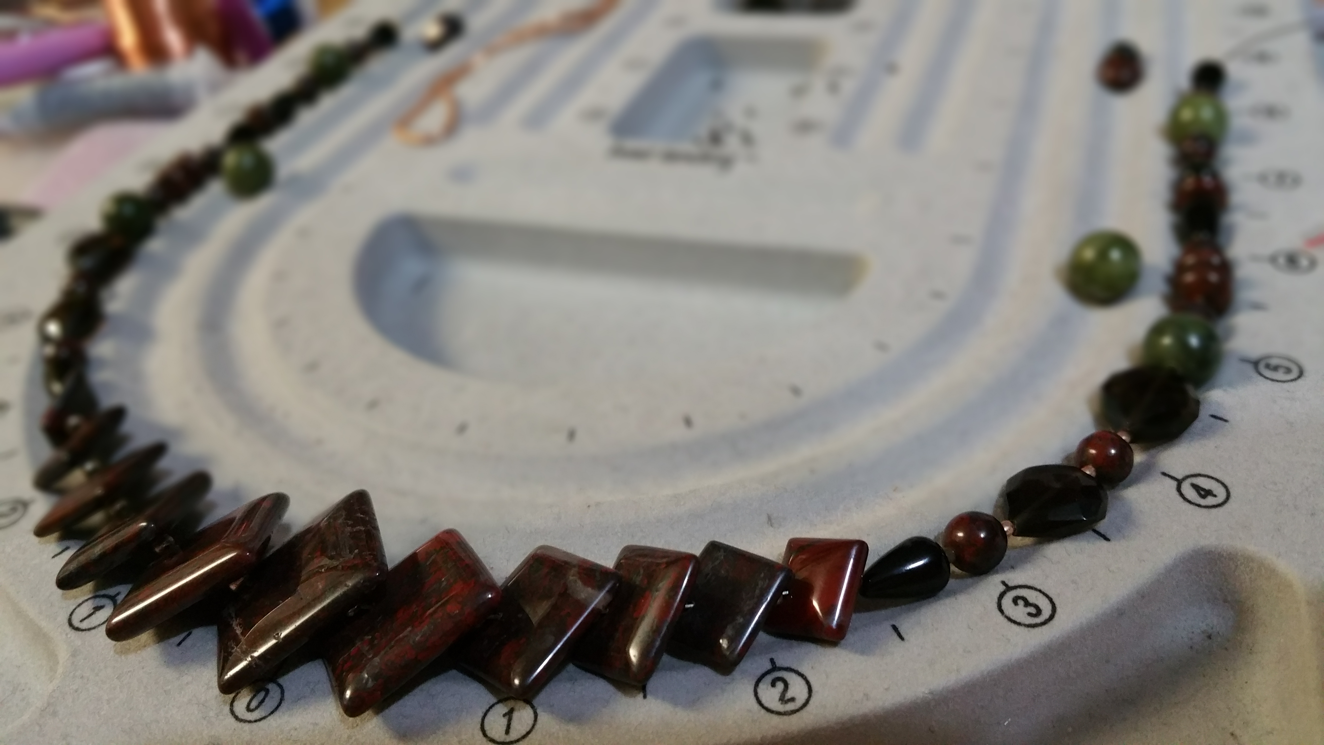 Inspiration has struck and stolen away with my dinner table…  With beads scattered everywhere, it seems easier to spread out and group items into ideas or “discard them” as they get pulled out. What doesn’t work for one idea may work for another off to the side…